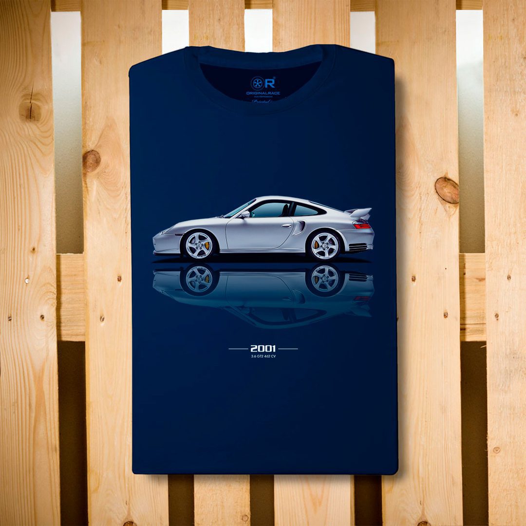 The turbocharged counterpart of the GT3, named GT2 and presented in 2001also only available at rear-wheel drive to save weight and avoid power loss through the drive shaft (the GT2 was built to compete in the GT2 racingwhich prohibited the use of a four-wheel drive system). The GT2 received a series of kits and aerodynamic body parts such as thefixed rear wing (made of CFRP since 2003) and an enhanced version of the 3.6-litre twin-turbo engine of 996 Turbowith turbochargers e intercooler larger, a revised intake and exhaust system and reprogrammed engine control software. The result was 356 kW (484 hp) a 5,700 rpm e 640 Nm between the 3500 and the 4500 rpmsufficient to make the car accelerate from 0 a 97 km/h at 3.9 seconds and reach a maximum speed of 315 km/h. In addition, both wheels and tyres have been oversized along with the carboceramic brakesto compensate for the increased power of the engine. On the GT2 in the passenger compartment, the rear seats and air conditioning have been removed and there is in their place a roll-bar. Both GT3 and GT2 have only the gearbox 6-speed manual.