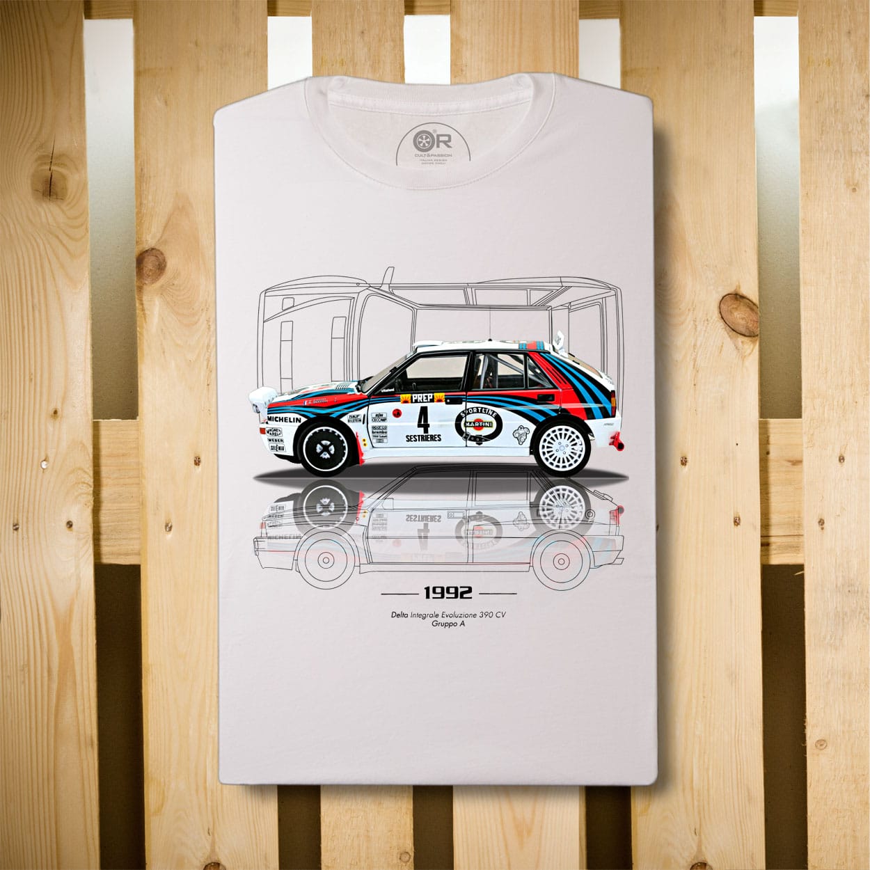 Wearing them is an act of love that can only be understood by those who are moved by opening the bonnet of a car and are flooded by the mix of smells of petrol and burnt oil, the soul of mechanics. For these people, Original Race was born, a premium line made in San Marino where every single model was created from photographs of cars actually owned by us or by our loyal customers. Top quality short-sleeved T-shirts. The graphics are made in a mixed technique between illustration and photography, making each OR T-shirt a unique work of art. All our prints are made using a manual process, small differences between the t-shirts are to be considered a feature of product exclusivity.