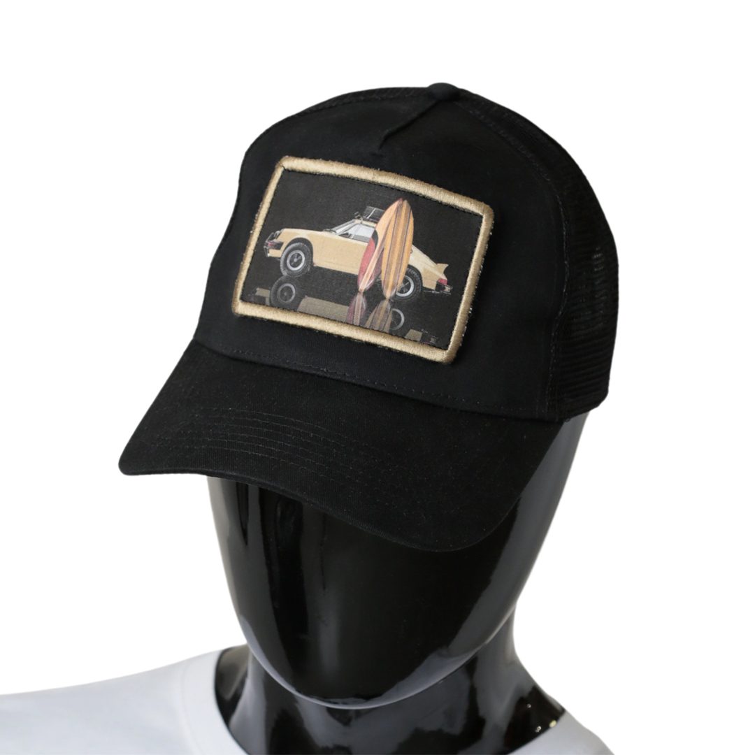 Casquette avec écusson frontal amovible et interchangeable avec bordure brodée