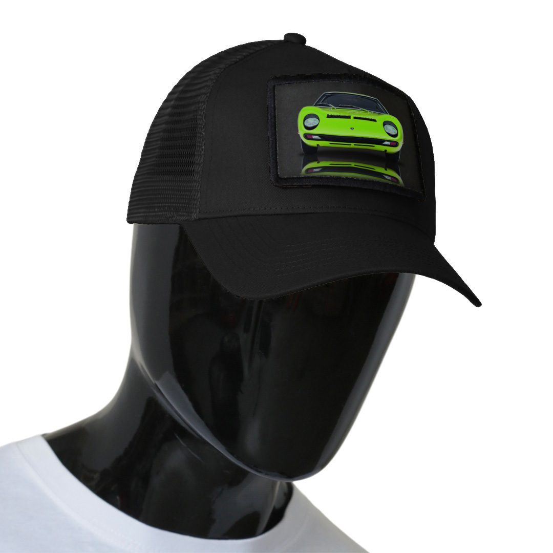 Casquette avec écusson frontal amovible et interchangeable avec bordure brodée