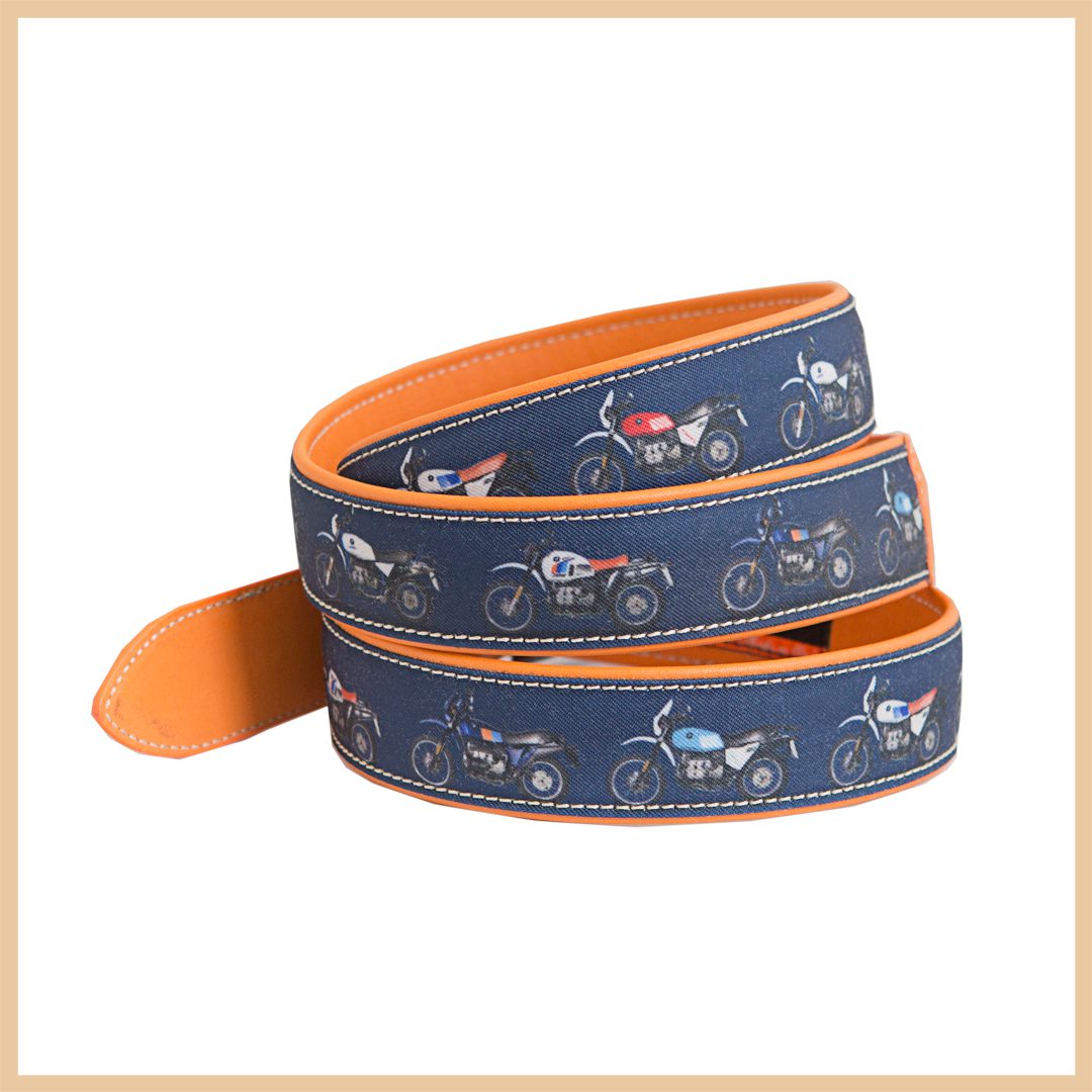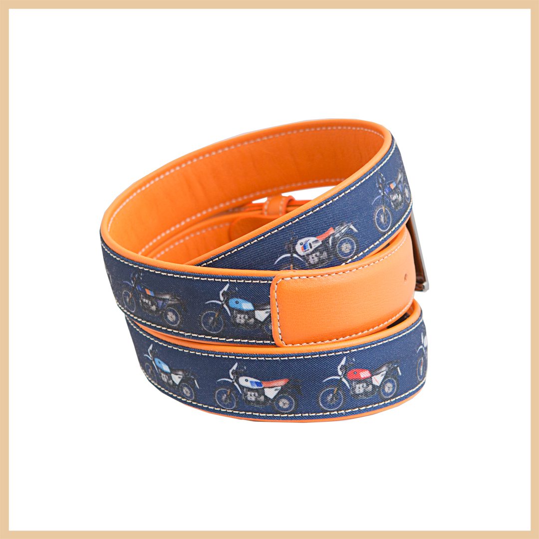 Ceinture unisexe en cuir véritable combiné à un tissu imprimé durable, fabrication artisanale de haute qualité, Made in Italy.