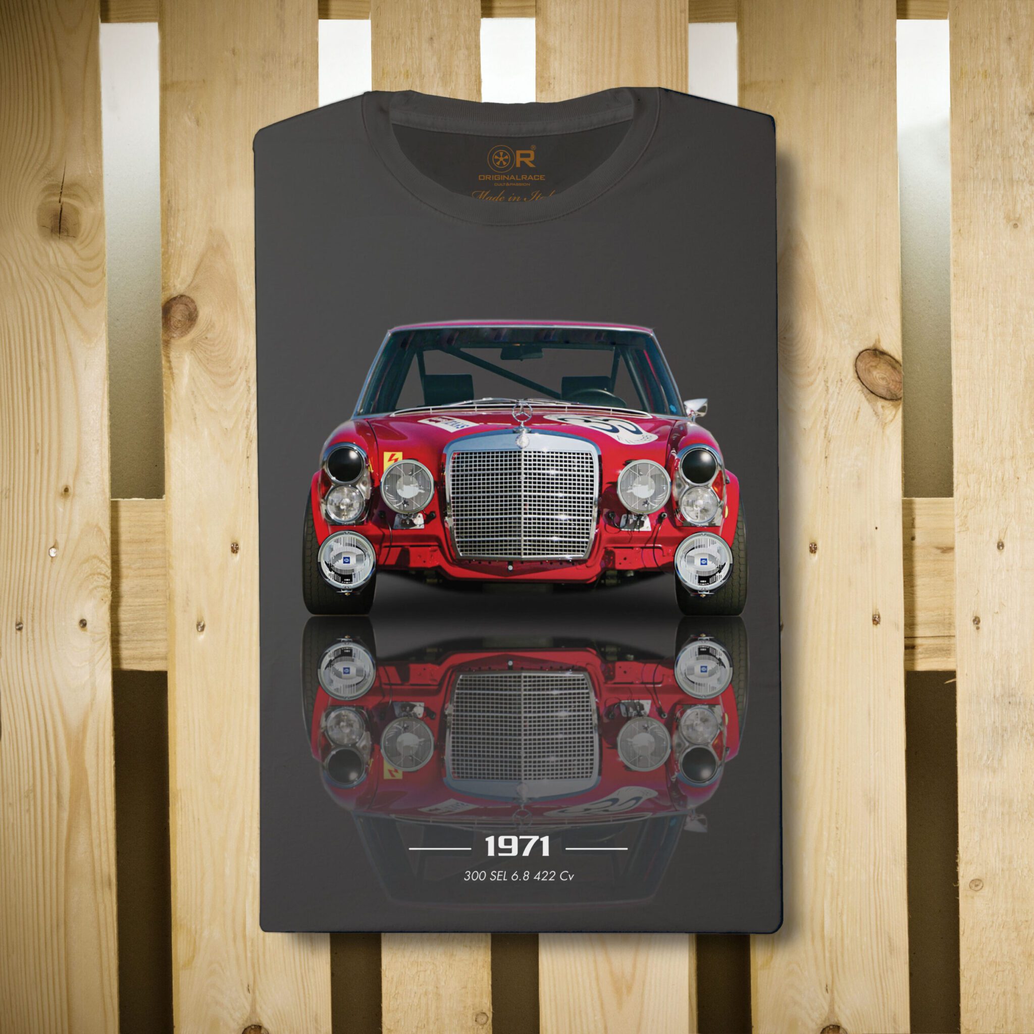 Un vêtement réservé aux passionnés des moteurs qui ont marqué l'histoire. Les porter est un acte d'amour que peuvent comprendre ceux qui s'enthousiasment lorsqu'ils ouvrent le capot d'une voiture et sont envahis par le mélange d'odeurs d'essence et d'huile brûlée, l'âme de la mécanique. C'est pour eux qu'est née OriginalRace, une ligne haut de gamme produite à Saint-Marin où chaque modèle est réalisé à partir de photographies de voitures qui nous appartiennent ou qui appartiennent à nos fidèles clients. T-shirts à manches courtes de qualité supérieure. Les graphismes sont réalisés selon une technique mixte entre l'illustration et la photographie, faisant de chaque vêtement OR une œuvre d'art unique. Toutes nos impressions sont réalisées à l'aide d'un processus manuel, les petites différences entre les T-shirts sont considérées comme une caractéristique d'exclusivité du produit.